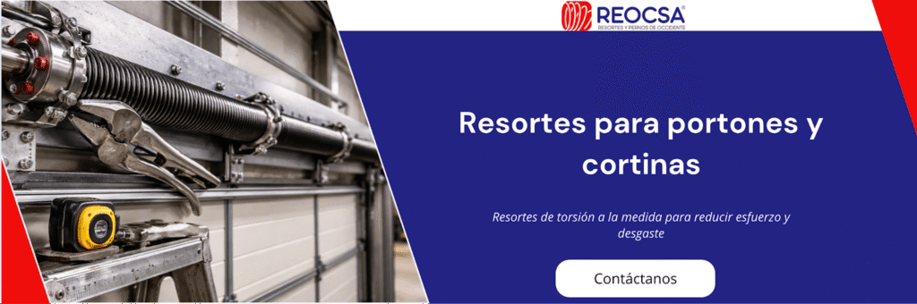 Cuando un resorte está bien hecho, el portón deja de “pelear”. En REOCSA fabricamos resortes a la medida y brindamos acompañamiento técnico para aterrizar la especificación correcta desde el diseño. Eso aplica tanto para resortes de torsión para portones como para soluciones de cortinas enrollables: no es solo “vender un resorte”, es entregar una pieza que funcione en tu aplicación real.